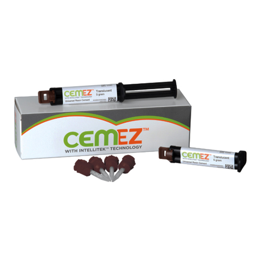 Cem EZ is a dual-cure resin cement that demonstrates an exceptional bond strength, reliable adhesion with optimal viscosity, and easy clean-up in a simple tack-cure procedure.