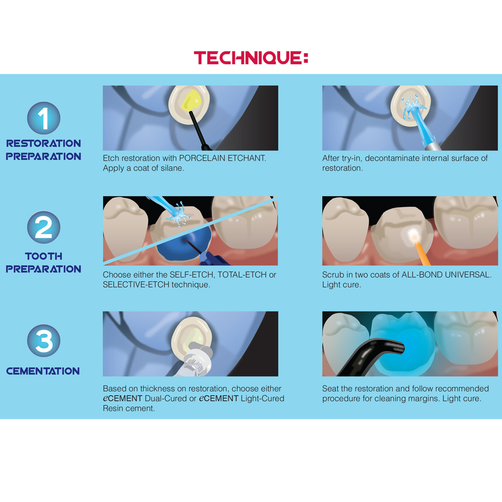 eCEMENT is a combination of innovative and proven products to successfully cement lithium disilicate restorations: