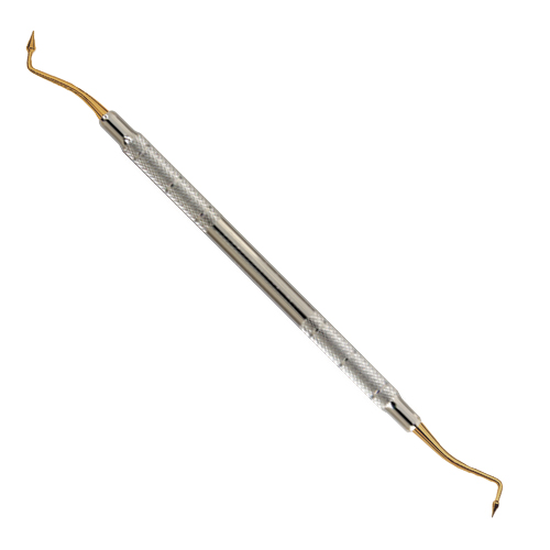 Our Posterior Occlusal Contouring Instrument/Small (POCS) allows you to sculpt secondary and tertiary anatomy into your posterior composite resin material, and to easily simulate any desired occlusal anatomy including cusp tips and incline planes. All of our composite placement instruments are non-stick, titanium coated and autoclavable.