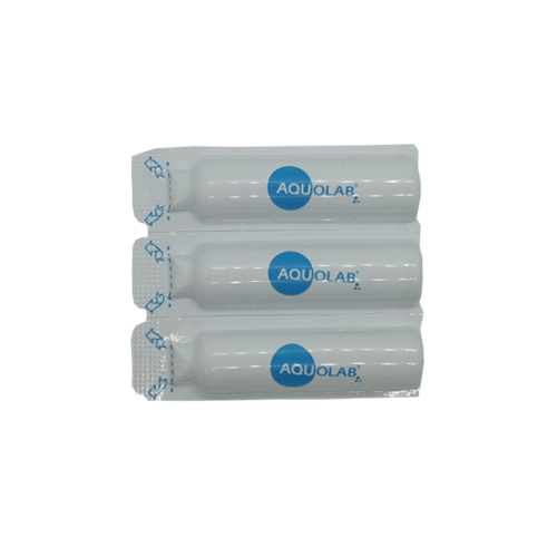 Blister pack with 3 single-dose 5 ml vials of water softener and descaling solution