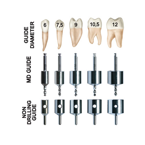 - Guides & drills fit into RA slow speed hand-piece.